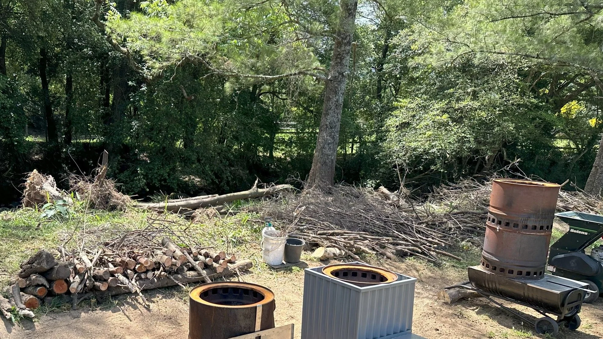Organize and stack the woody material into kindling, larger branches, and logs. Ensuring that they are at lengths that do not extend out of the unit.